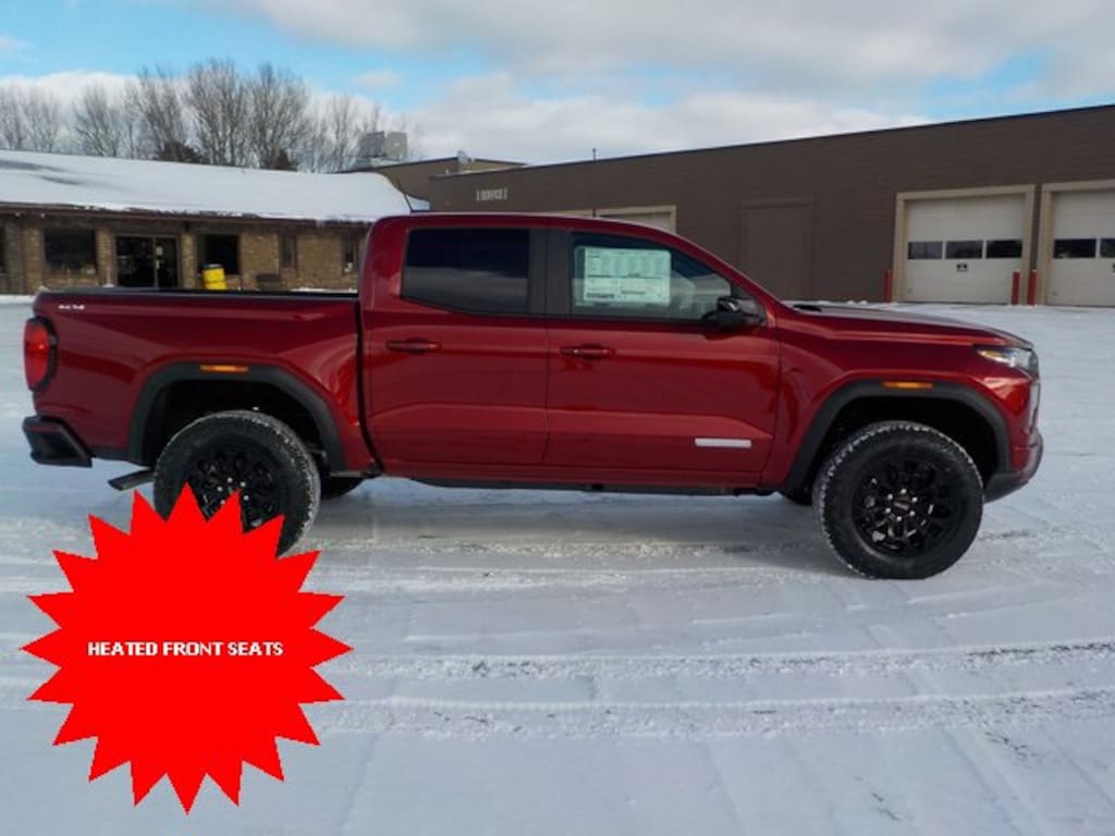 $3,801 off MSRP! Canyon Elevation, 4D Crew Cab, 2.7L I4 Turbocharged DOHC 16V LEV3-SULEV30 310hp, 8-Speed Automatic, 4WD, Volcanic Red, Jet Black Cloth, 8-Way Power Driver Seat Adjuster, Auto High-beam Headlights, Blind Zone Steering Assist w/Trailering, Canyon Safety Plus Package, Forward Collision Alert, Navigation System, Rear Cross Traffic Braking, Remote Vehicle Starter System, Ultrasonic Rear Park Assist.