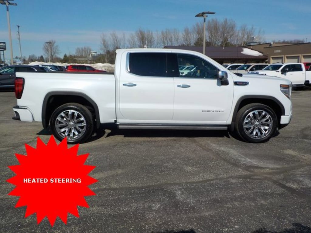 $9,784 off MSRP! Sierra 1500 Denali, 4D Crew Cab, EcoTec3 6.2L V8, 10-Speed Automatic, 4WD, Glacier White Tricoat, Atmosphere/Brownstone Leather, 120-Volt Bed Mounted Power Outlet, 120-Volt Interior Power Outlet, 170 Amp Alternator, 2 Charge/Data USB Ports Inside Center Console, 2 Type-C Charge-Only Rear USB Ports, 2 USB Ports, Auto-Locking Rear Differential, Auxiliary External Transmission Oil Cooler, Bed View Camera, Black Recovery Hooks, Chrome Header with Signature Denali Chrome Grille, Chrome Wheel to Wheel Assist Steps, Color-Keyed Carpeting Floor Covering, Deep-Tinted Glass, Denali Premium Suspension with Adaptive Ride Control, Denali Reserve Super Package, Electric Rear-Window Defogger, Floor-Mounted Center Console, Front Rain-Sensing Wipers, GMC MultiPro Power Steps, HD Surround Vision, Heated 2nd Row Outboard Seats, Heated Driver and Front Outboard Passenger Seating, Heavy-Duty Air Filter, Hill Descent Control, Hitch Guidance, Hitch View, in-Vehicle Trailering System App, Integrated Trailer Brake Controller, Keyless Open and Start, LED Cargo Area Lighting, Multicolor 15 Diagonal Head-Up Display, OnStar Services Capable, Perimeter Lighting, Power Door Locks, Power Front Passenger Windows with Express Up/Down, Power Front Windows with Driver Express Up/Down, Power Rake and Telescoping Steering Column, Power Rear Windows with Express Down, Power Sliding Rear Window with Rear Defogger, Power Sunroof, Preferred Equipment Group 5SA, Premium Bose 7-Speaker Sound System, Push Button Start, Rear Camera Mirror, Rear Cross Traffic Braking, Rear Pedestrian Detection, Rear Wheelhouse Liners, Remote Vehicle Starter System, SiriusXM with 360L Trial Subscription, Spray-on Pickup Bedliner with GMC Logo, Steering Wheel Audio Controls, Super Cruise, Super Cruise Wrapped Steering Wheel, Technology Package, Theft Deterrent System (unauthorized Entry), Trailer Camera Provisions, Trailer Side Blind Zone Alert, Trailering Package, Ultrasonic Front and Rear Park Assist, Universal Home Remote, Ventilated Driver and Front Passenger Seats, Wheel Locks (set of 4), Wheels: 20 x 9 Multi-Dimensional Polished Aluminum, Wheels: 22 x 9 Painted Aluminum, Wi-Fi Hotspot Capable, Wireless Charging.